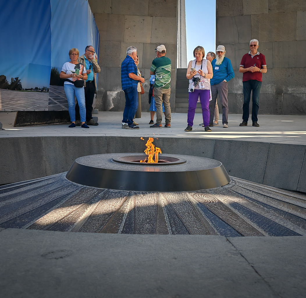 Als erstes fuhren wir zum Genozid-Mahnmal Zizernakaberd und besuchten anschließend das Museum-Institut für den Völkermord an den Armeniern. Der Genozid (1915) und der Konflikt um Bergkarabach (1918 bis 2023) sind prägende geschichtliche Ereignisse der Neuzeit.