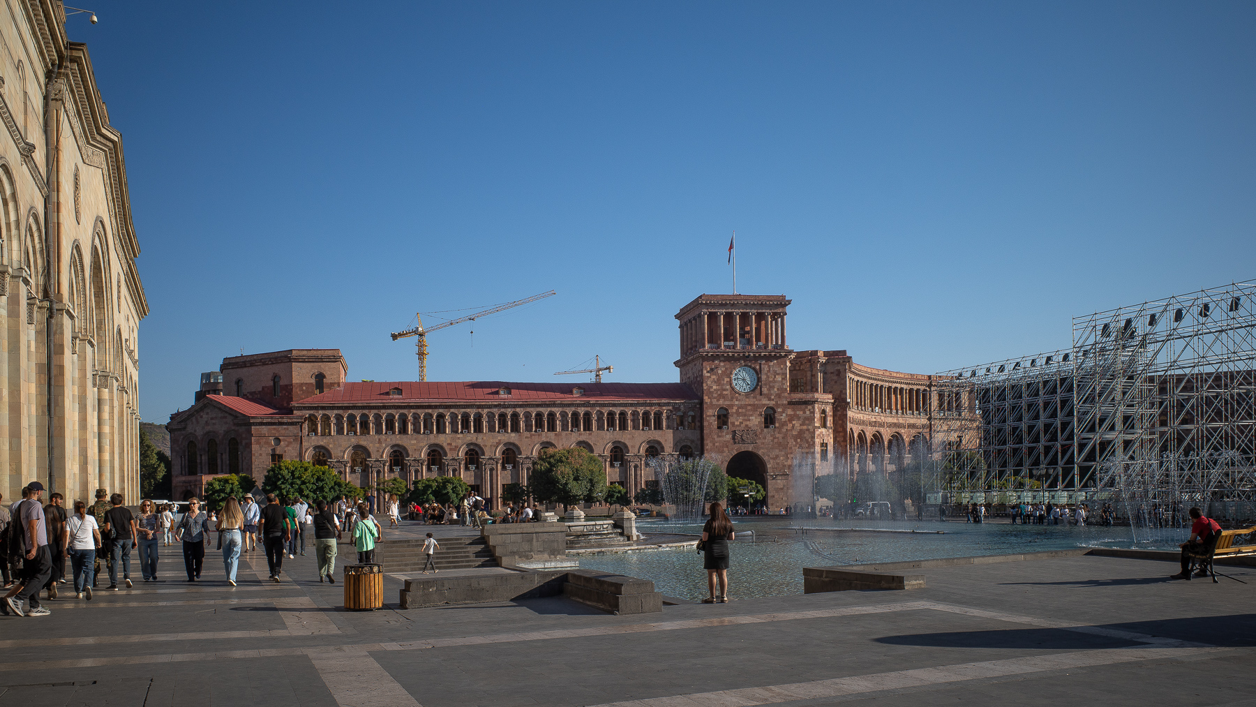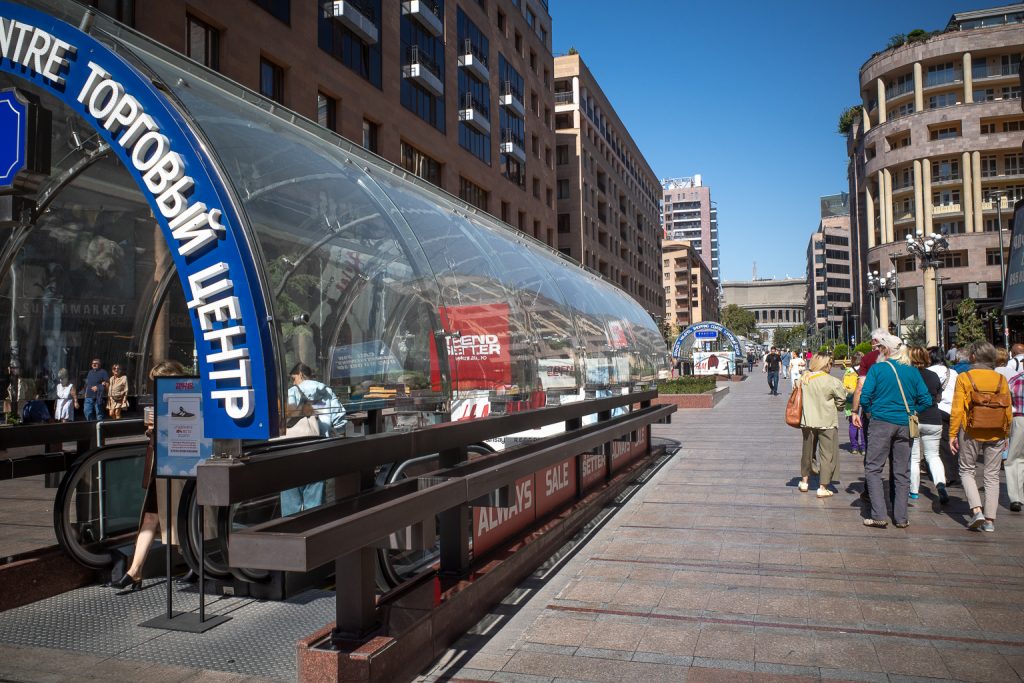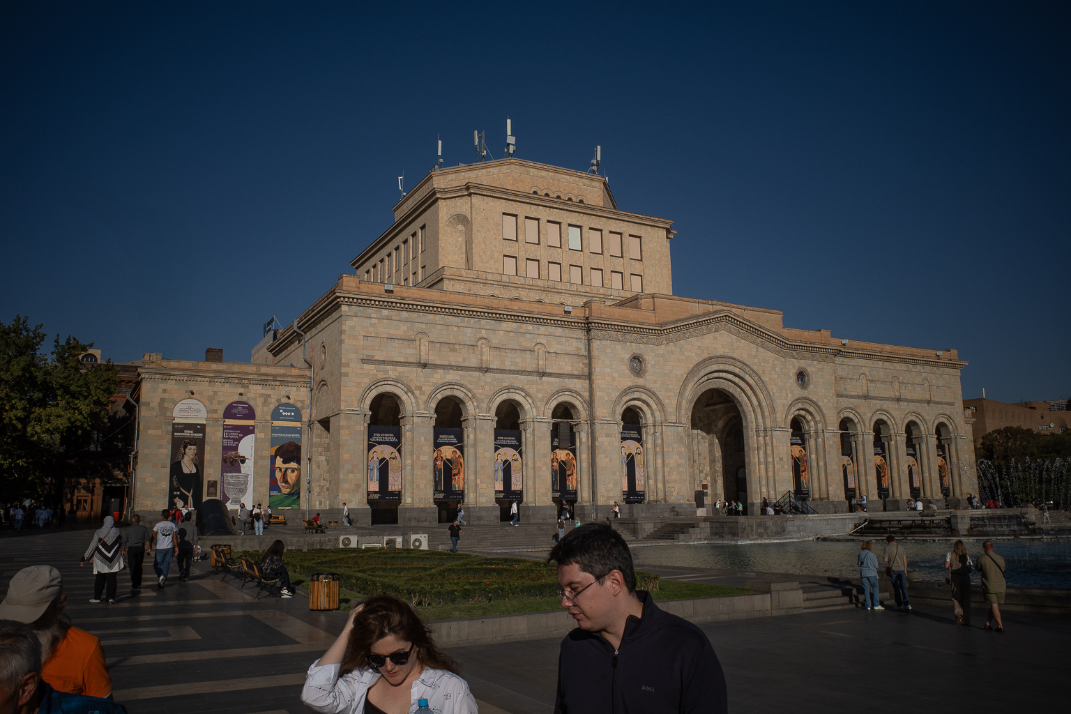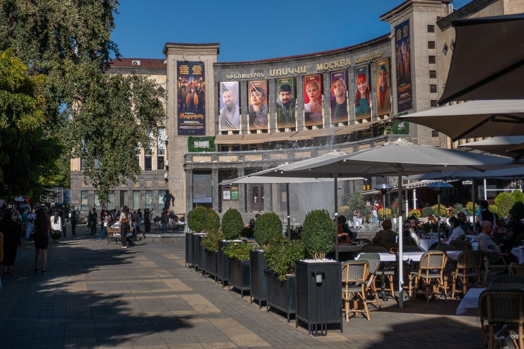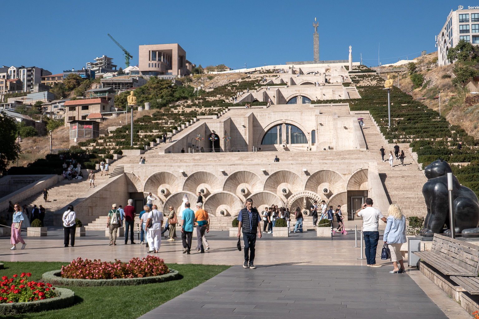 Weiter ging es dann u.a. am Opernhaus vorbei hinüber zur Kaskade von Jerewan bis zum Charles Aznavor Square, an dem vor der Sowjetzeit drei Kirchen in unmittelbarer Nähe zueinander gestanden haben sollen. Eine jüdische Synagoge, eine christliche Kirche und eine Mosche. Diese Gotteshäuser wurden damals abgerissen und heute steht auf diesem Platz u.a. das Moskau Cinema.