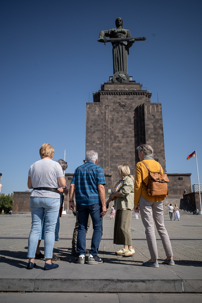 Nach dem Besuch des Museums sahen wir uns die Staue Mutter Armenien an. Das Denkmal wurde ursprünglich zu Sowjetzeiten für Stalin errichtet. Stalin wurde 1962 vom Sockel genommen und 1967 nahm den Platz die Mutter Armenien ein. Im Sockel befindet sich u.a. das Museum des Verteidigungsministeriums.