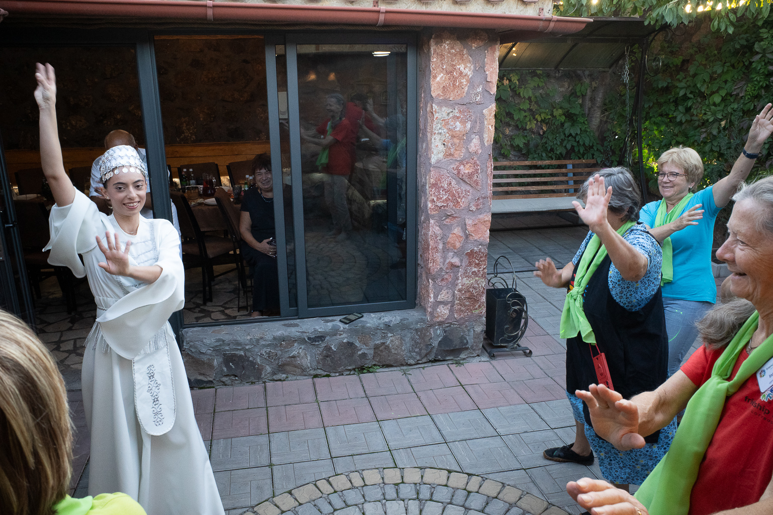 Überrascht wurden wir mit einem kleinen Tanzkurs, wo sich unsere Gastgeber bemühten uns ein paar Grundschritte armenischen Tanzens beizubringen.